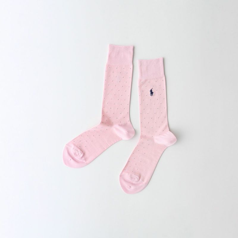 代表的なポニーロゴが刺しゅうされたカジュアルにもビジネスにも使える派手すぎない小さなドット柄のソックスです。
