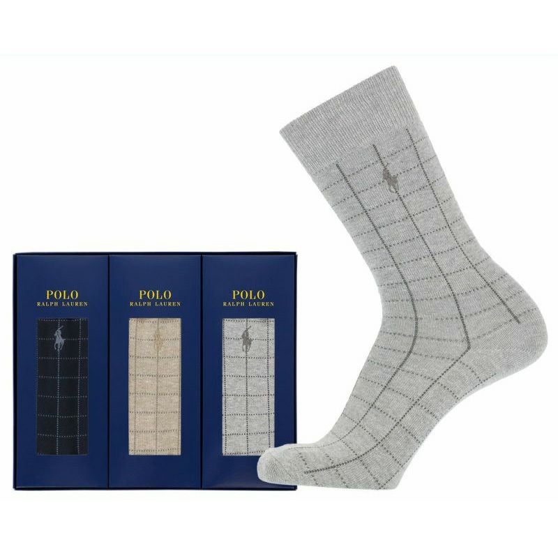 POLO RALPH LAUREN 3足セット 箱入り ギフトセット 日本製 綿混 ワンポイント刺繍 格子柄 クルー丈 メンズ ソックス PLC-30C giftset ギフト プレゼント