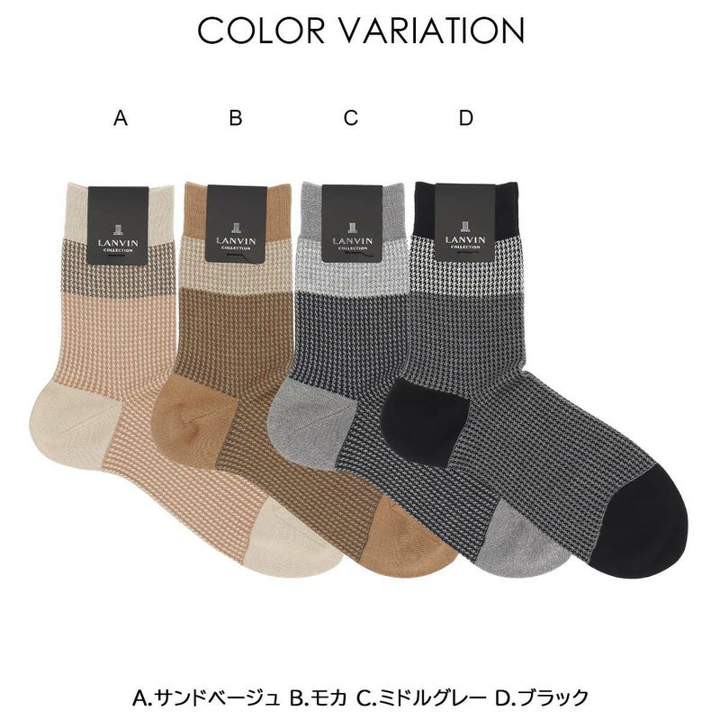4. LANVIN COLLECTION 抗菌防臭 千鳥格子切替 Hiゲージ ミドル丈 カジュアル ソックス メンズ 02412145