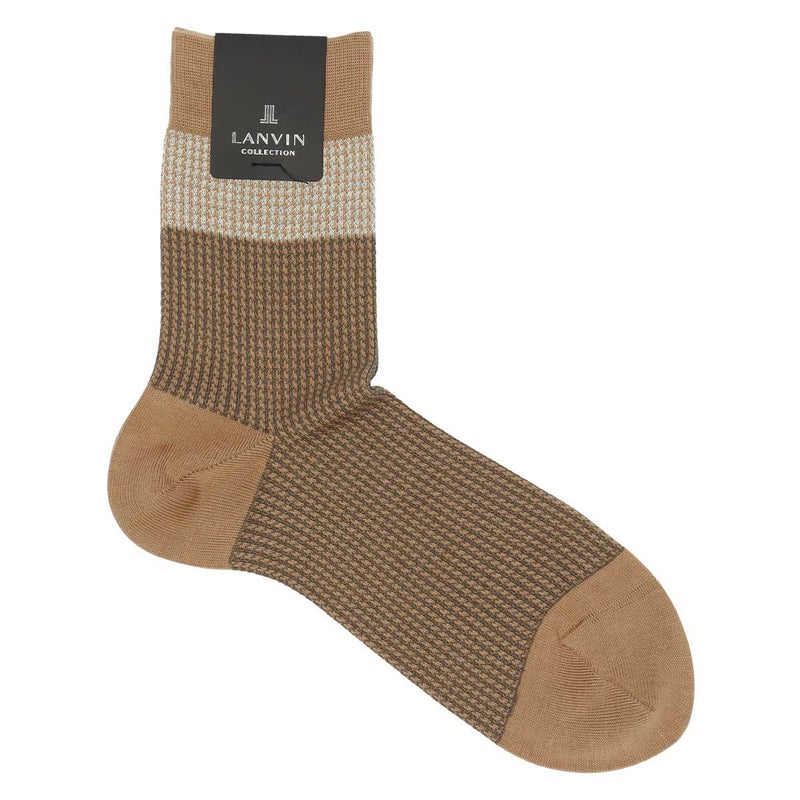 5. LANVIN COLLECTION 抗菌防臭 千鳥格子切替 Hiゲージ ミドル丈 カジュアル ソックス メンズ 02412145