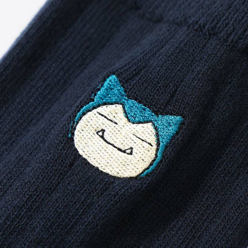 さりげないカビゴンの刺繍がポイントのシンプルな メンズ リブ クルー丈 ソックスです。