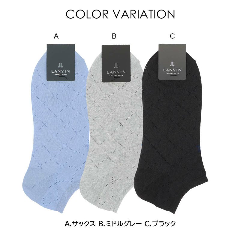 ランバン コレクション 男性 紳士 靴下 LANVIN COLLECTION 涼感 サラっとした加工糸使用 抗菌防臭 ダイヤモンド メッシュ スニーカー丈 カジュアル ソックス メンズ 日本製 02452323
