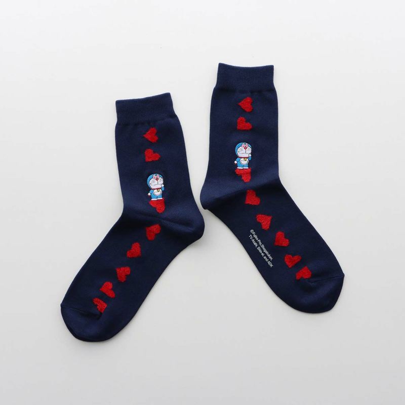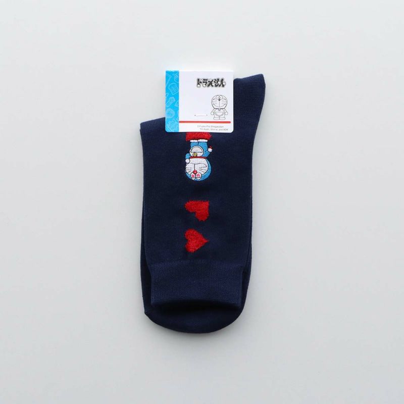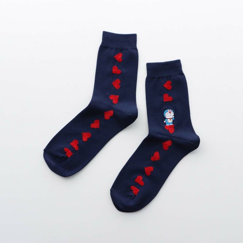 愛らしいドラえもんとハート柄がデザインされたカジュアルソックスです。日常使いはもちろん、プレゼントにも最適です。
