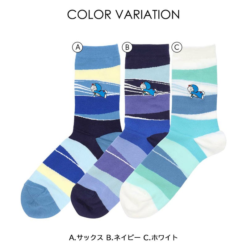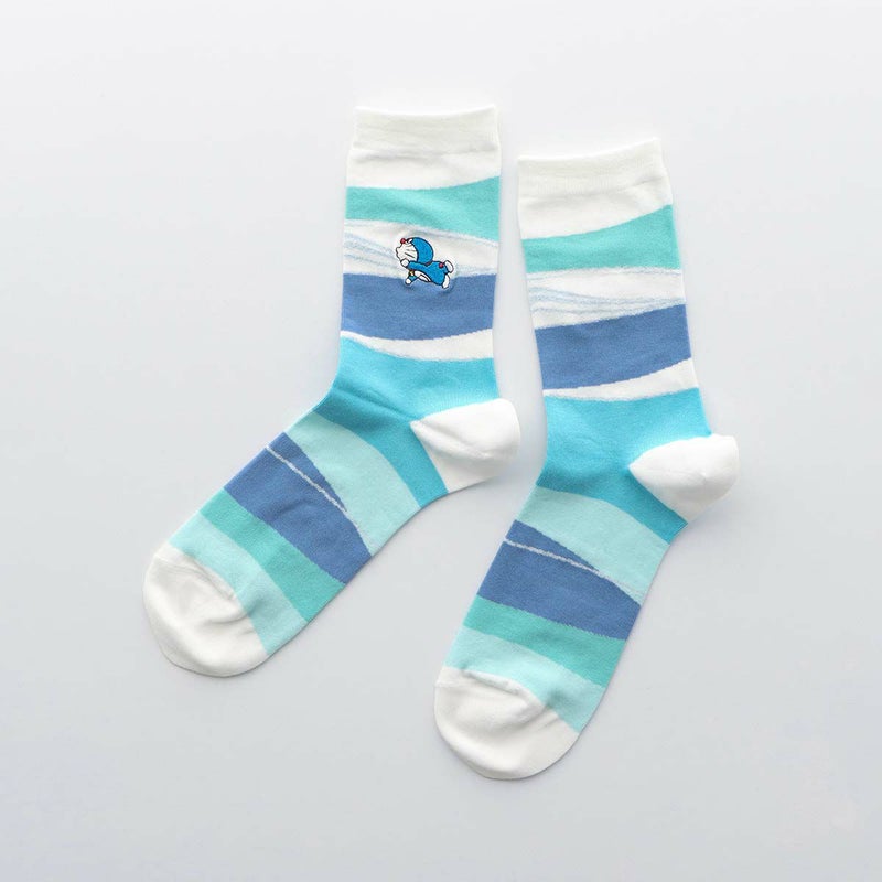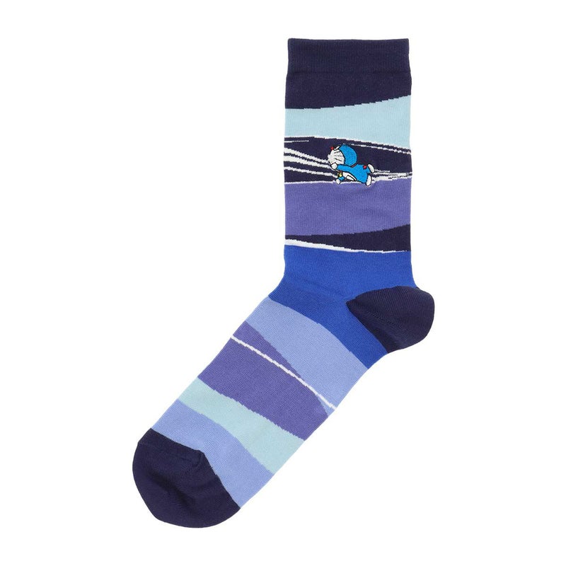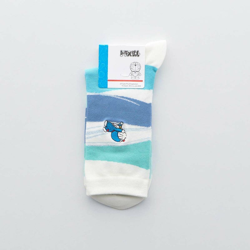 ドラえもんの泳ぐ姿が愛らしいカジュアルソックスです。日常使いはもちろん、プレゼントにも最適です。