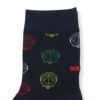 ドラえもんのフェイスをドットのように表現した、遊び心あふれるデザインです。様々な色のフェイスが散りばめられており、シンプルなベースカラーの中でポップなアクセントになっています。見る角度によって異なる表情を見せる、ユニークで可愛らしいパターンが特徴のカジュアルソックスです。