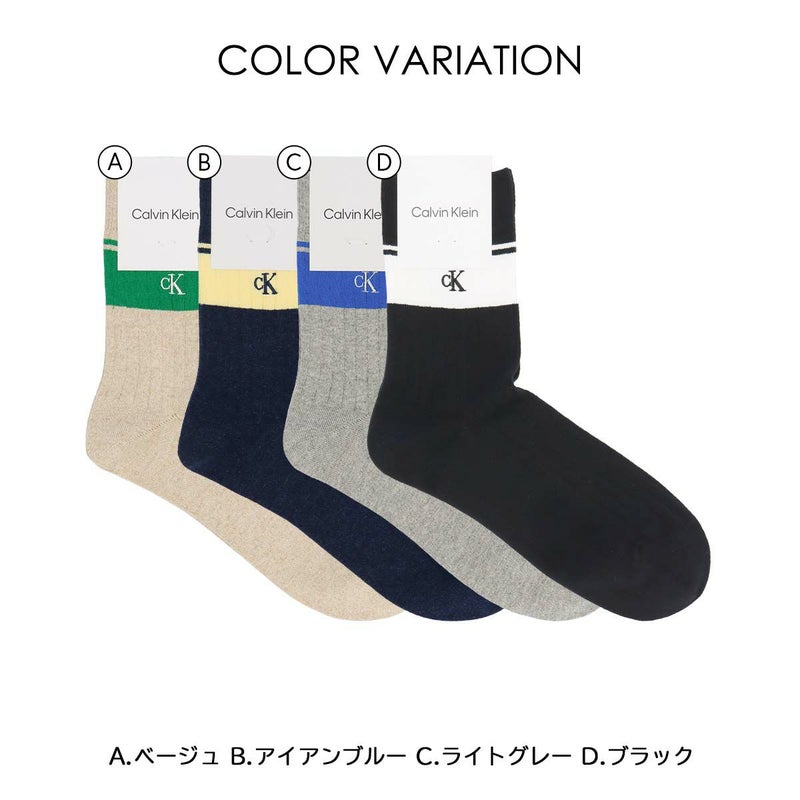 4. Calvin Klein オーガニックコットン混 ミドル丈 切替リブ カジュアル ソックス メンズ 日本製 02542279