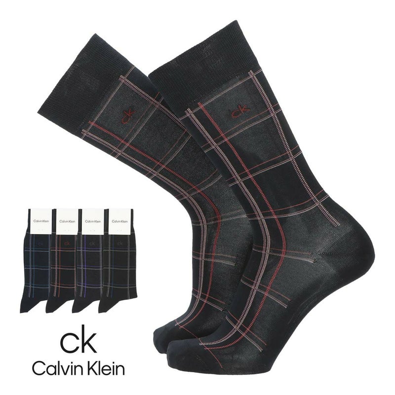 カルバンクライン 男性 紳士 靴下 Calvin Klein 抗菌防臭 ビジネスソックス アクセントチェック クルー丈 メンズ 02562362