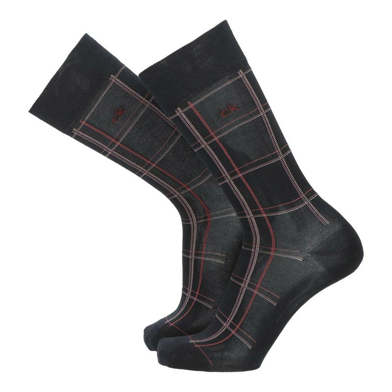 6. Calvin Klein 抗菌防臭 ビジネスソックス アクセントチェック クルー丈 メンズ 02562362