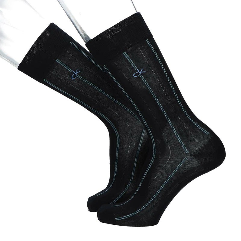 6. Calvin Klein 抗菌防臭 コントラスト ストライプ クルー丈 ビジネス ソックス メンズ 02562367