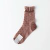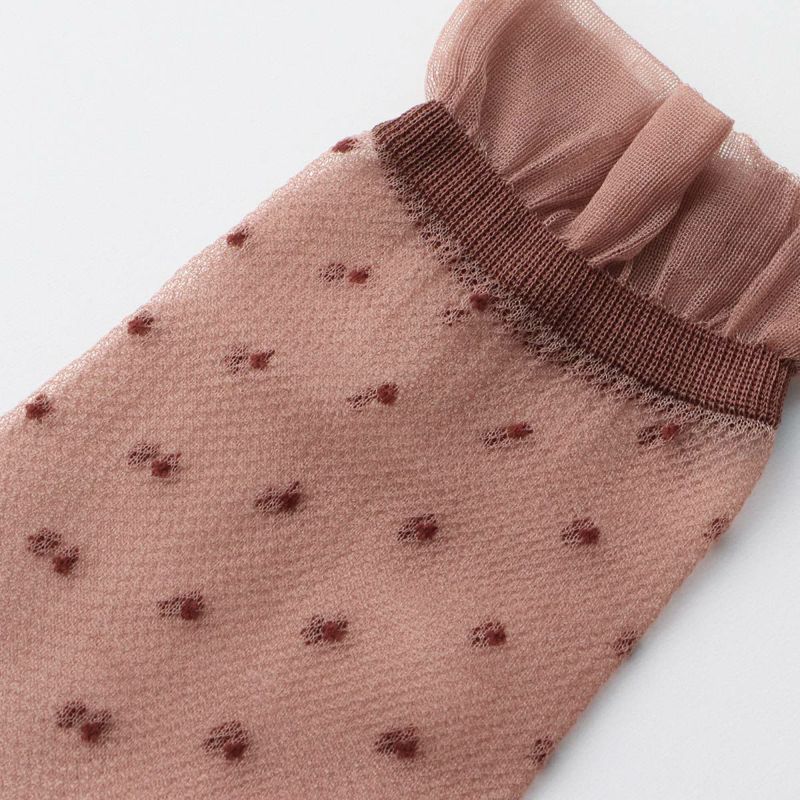 レトロなドット柄に履き口のフリルが可愛いデザインの靴下です。