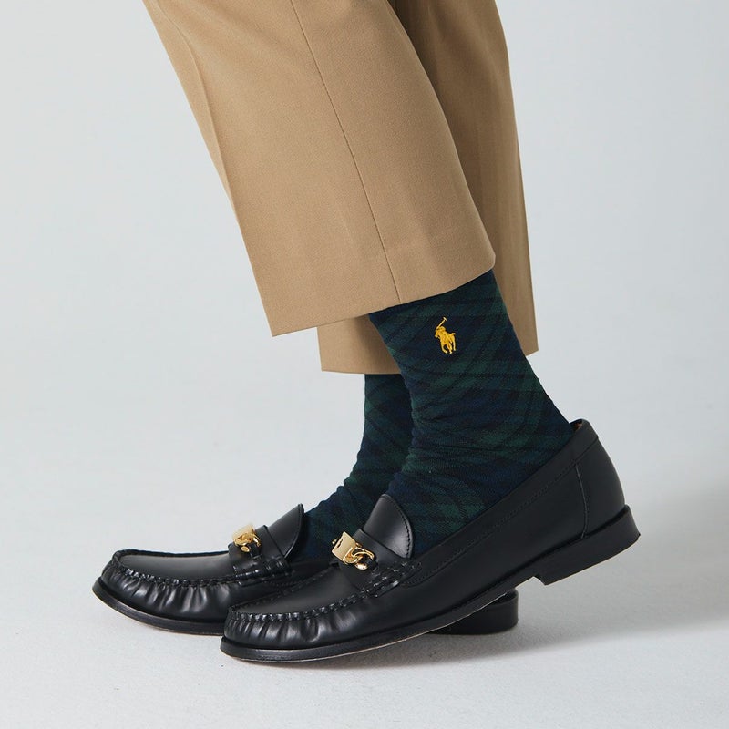 トラディショナルなブラックウォッチ柄が足元にさりげない高級感を添えます。