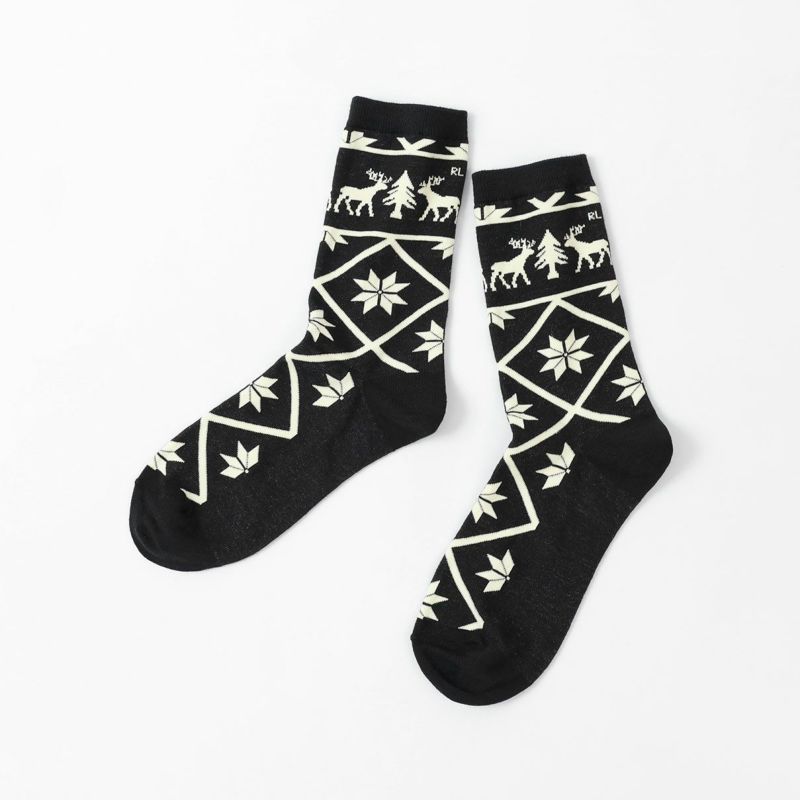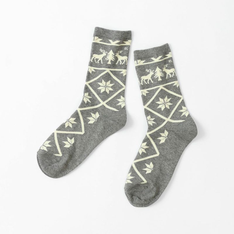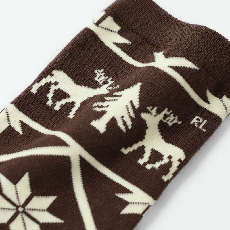 全体にあしらわれたスノーフレーク(雪の結晶)柄が、シーズナルな華やかさをプラスします。ポロらしいクラシックな色合いとデザインで、足元にさりげないおしゃれ感を。