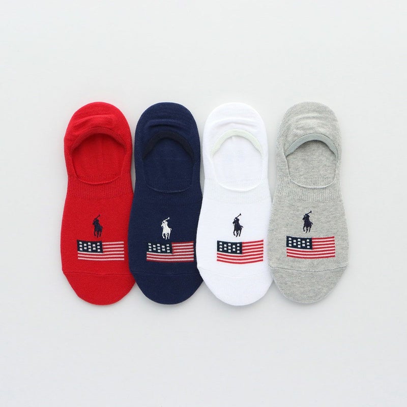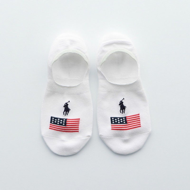 代表的なポニーロゴ刺繍と星条旗モチーフがデザインされたフットカバーです。