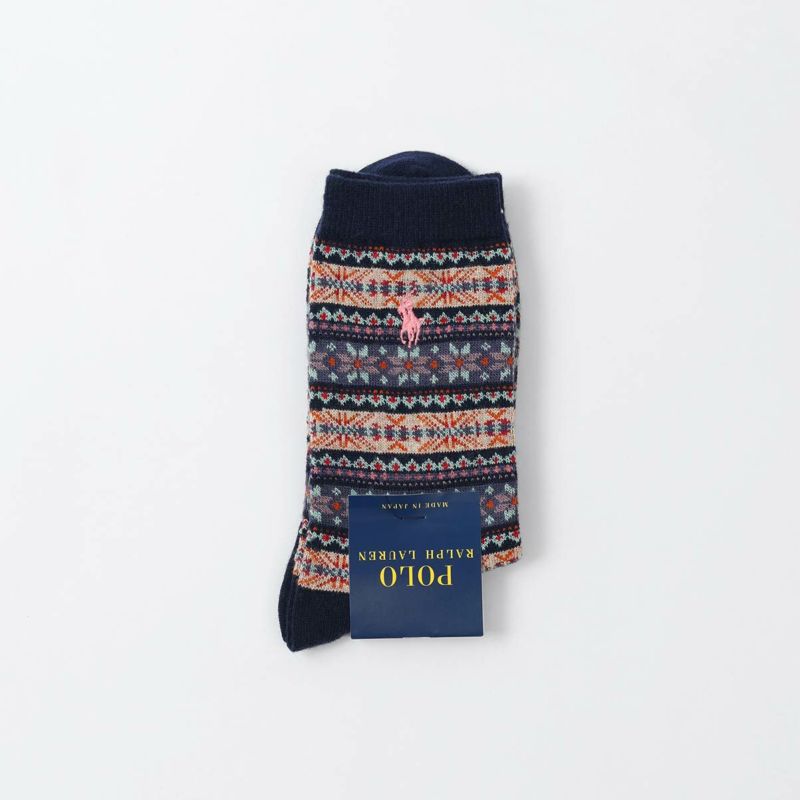 6. POLO RALPH LAUREN 日本製 毛混 ワンポイント刺繍 フェアアイル柄 レディース クルー丈 ソックス 03208599
