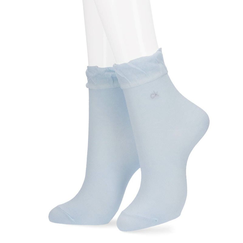 カルバンクラインス 靴下 女性 婦人 33%OFF Calvin Klein レーヨン混 履き口フリル CK刺繍 クルー丈 ソックス レディース 03265563