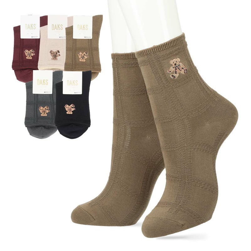 ダックス 公式オンラインショップ 婦人 靴下 DAKS 履き口ゆったり レーヨンシルク混 リンクスベア刺繍 クルー丈 レディース ソックス 03367320