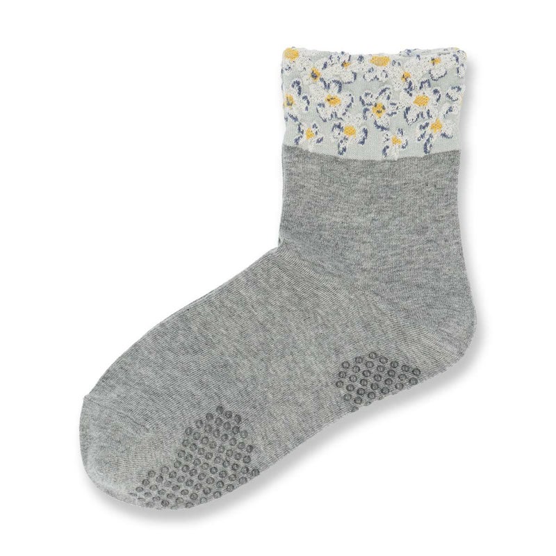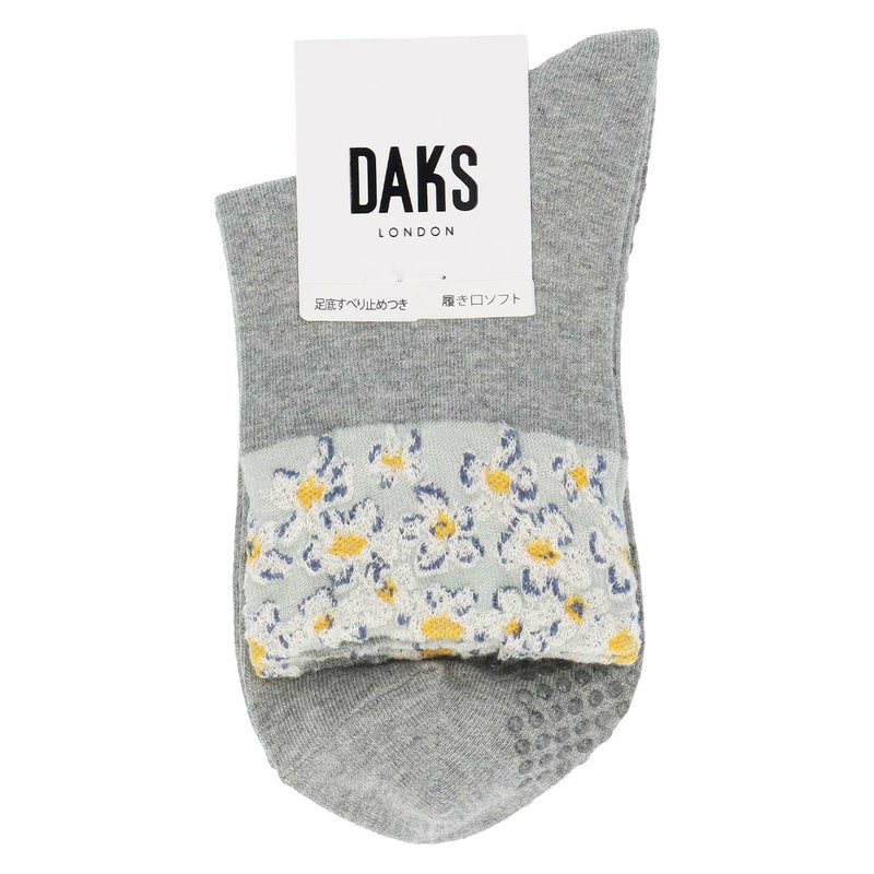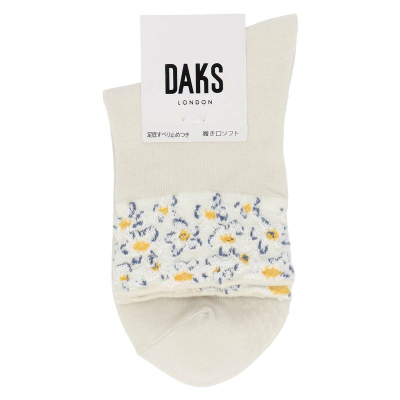 6. DAKS 履き口花柄フラット 綿混 クルー丈 ソックス 日本製 足底滑り止め付き レディース 03367465