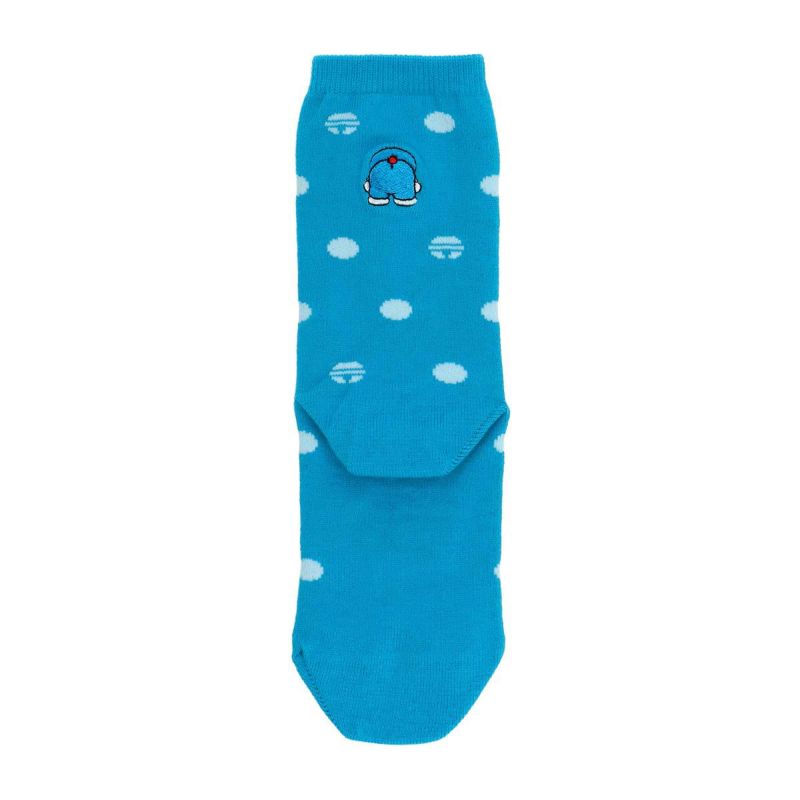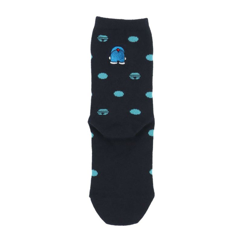 ドラえもんの象徴である鈴をドット柄にデザインし、ドラえもんの丸いフォルムとしっぽが刺繍された遊び心溢れるカジュアルソックスです。日常使いはもちろん、プレゼントにも最適です。