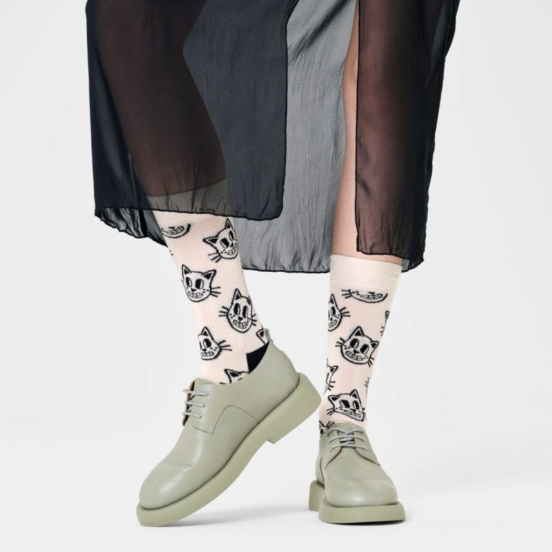 いつでも完璧なスタイルを!猫の靴下は飽きることがありません。というわけで、またまたネコの大好きな柄をご用意しました。お気に入りのネコちゃんをプリントしました!今回はオールドスクールな雰囲気で、より漫画的なプリントです。雰囲気です!ソックスは柔らかく通気性の良い梳毛コットンを使用。