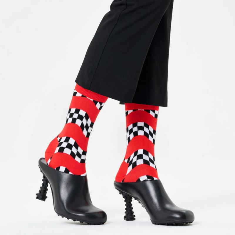 位置について、用意、さぁおしゃれに出かけよう!活気のあるレースソックスは、あなたの一日のパワフルなスタートを約束してくれるはず。チェッカーフラッグデザインは、あなたの服に動きとドラマを加えます。履き心地の良いコームドコットンを使用。