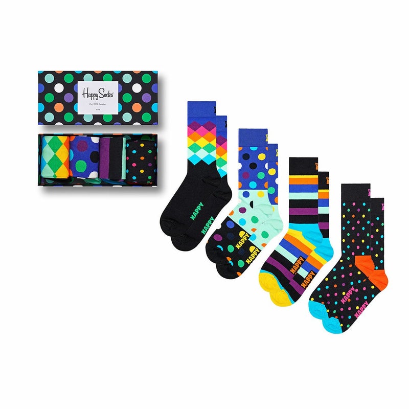 MAIN SOCKS クルー丈のベーシックシリーズモデル・ギフトBOX付き、ID:SXBDO09-0100 4-Pack Black Week Big Dot Gift Set