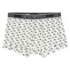 ストレッチコットンを使用し、ウエストバンドにロゴをあしらったボクサーパンツ。コントラストの効いたイーグルロゴのパターンを全体に施しました。