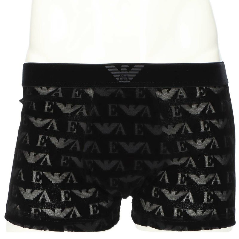 高級感あふれるデヴォレベルベットを使用したボクサーブリーフ。全体のEAロゴモチーフ部分はシースルーで、洗練された半透明感を演出しています。ベルベット素材の伸縮性ウエストには、中央にイーグルの刺繍が施されています。この商品は、特製メタルロゴギフトボックスに入れてお届けします。