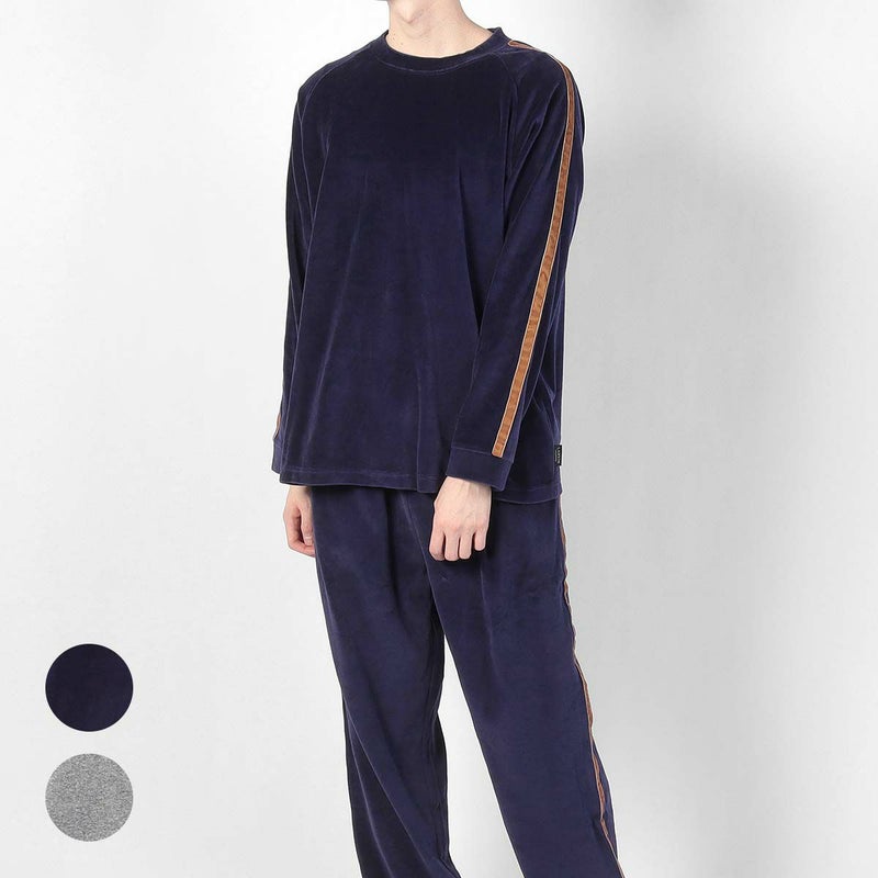 50%OFF 【トップスのみ】LANVIN COLLECTION ベロア無地 メンズ クルーネック 長袖 ロングTシャツ 綿混 スウェット 54424045