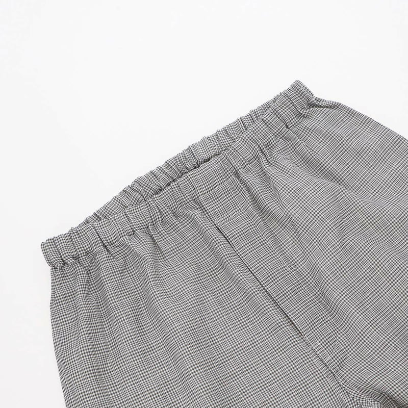 パジャマアイテムでは、一般的で代表的な2重ガーゼ素材です。飽きのこない細かい単色使いのチェック柄で、シンプルに仕上げました。