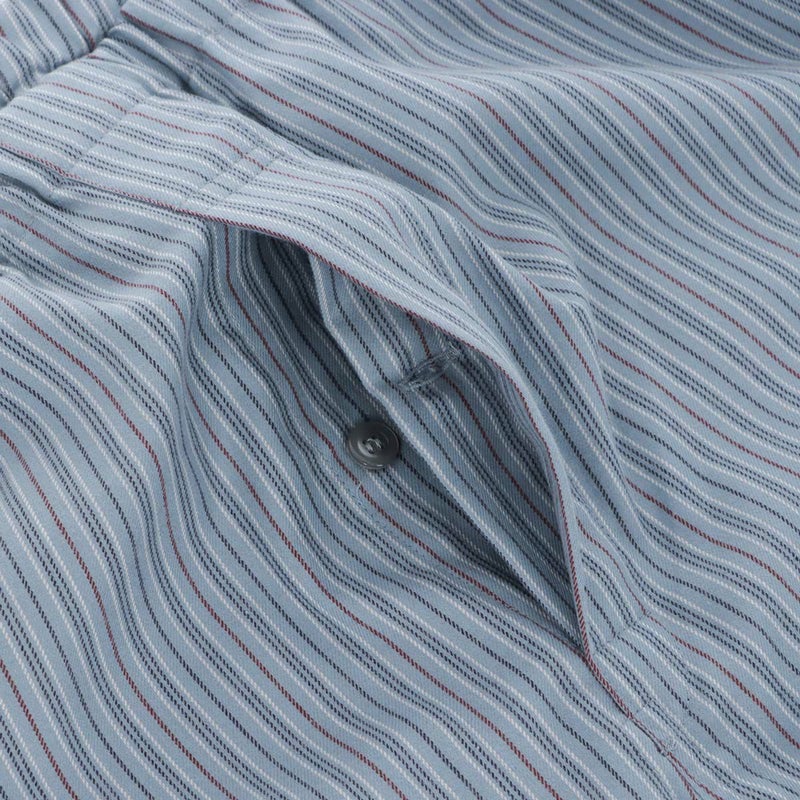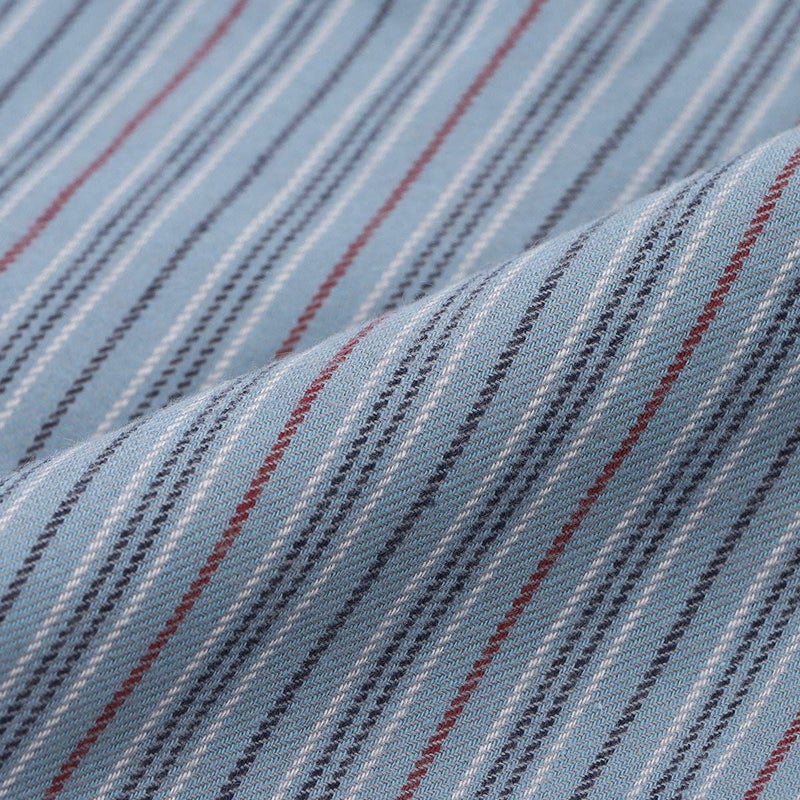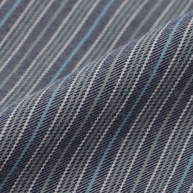 少し寒さを感じる季節にオススメな、薄手~中肉くらいの厚さの生地に薄く起毛をかけた素材です。カラーリングがベーシックなストライプ。飽きのこない柄いきです。