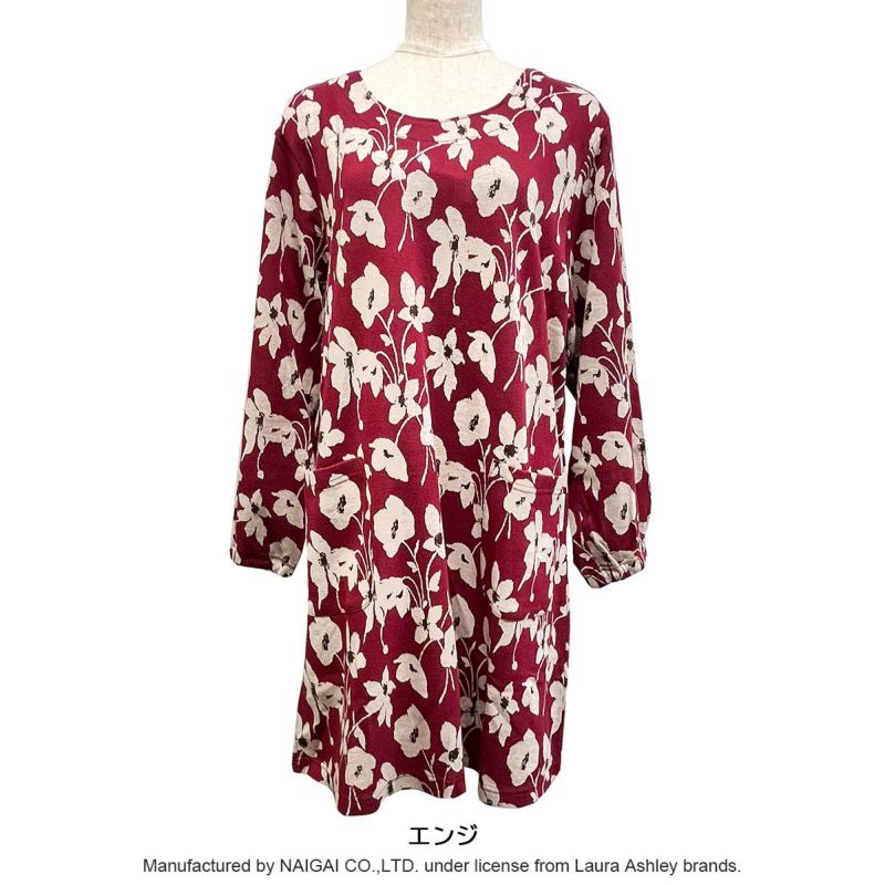 ジャカード編み、ニット素材の長袖チュニックエプロン。 シンプルでエレガントな印象のシモーヌ柄はローラ アシュレイのアーカイブに追加された壁紙からインスピレーションを得た、紛れもなくエレガントな印象を与えてくれるプリントです。 またコンテンポラリースタイルにインスパイアされており、ポピーの花のシルエットとともに伸びる茎や葉が描かれています。薄い起毛のかかったコットンニット素材がふんわり暖かな印象。