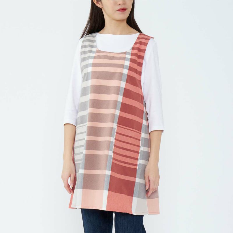 後ろで結ぶタイプのため、フィット感を調整しやすく、さまざまな体型に対応可能です。左右に便利なポケットも付いています。