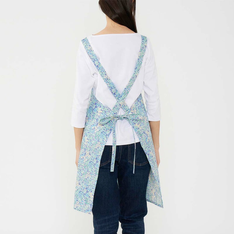 肩ひもを背中でクロスして後ろで腰紐を結ぶタイプのベーシックなエプロン。