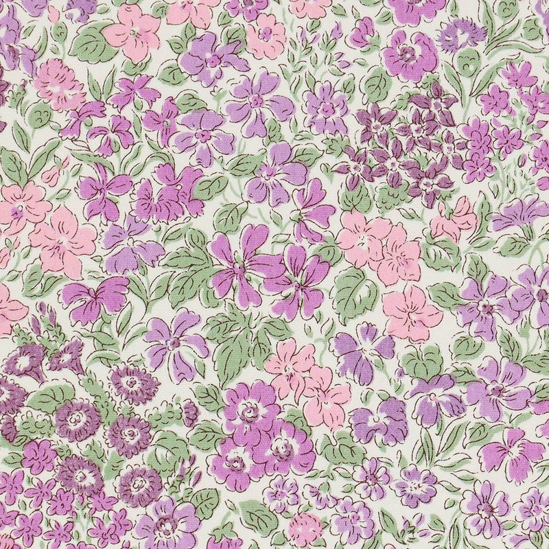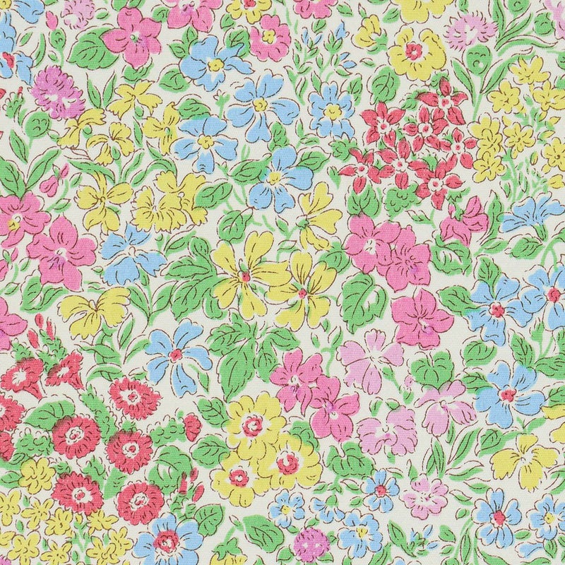 リバティプリント Joanna Louise(ジョアンナルイーズ)1940年代の貴重な試刷り紙を元に描かれた、リバティらしいボタニカルプリントです。アザミ、ナデシコ、バラ、そしてアフリカホウセンカが、ルーズなアウトラインで隙間なく、魅力的な牧草地の風景を描き出します。