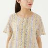 着丈(前ネックポイントより):68cm、肩幅:38.5cm、胸囲:104cm、裾まわり:117.5cm、袖丈:20.5cm、袖まわり40.5cm、袖口まわり37.5cm、衿天幅:20cm、衿下り:2.5cm
