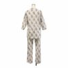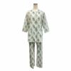 程よい広がりのAラインの前開きトップスと、パンツの裾にはゴム通し穴がついておりお手持ちのゴムを入れて調整が可能です。