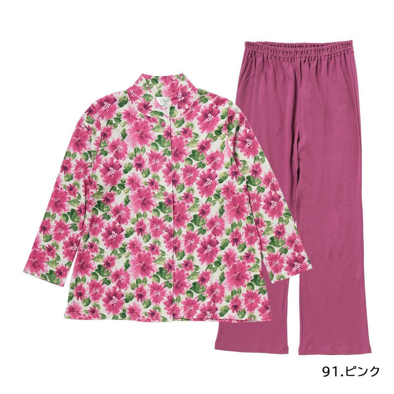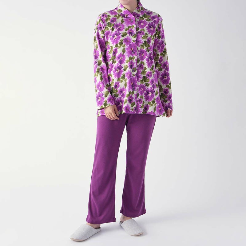 おすすめポイント30スムース 微起毛 前ボタン、長袖パジャマ
