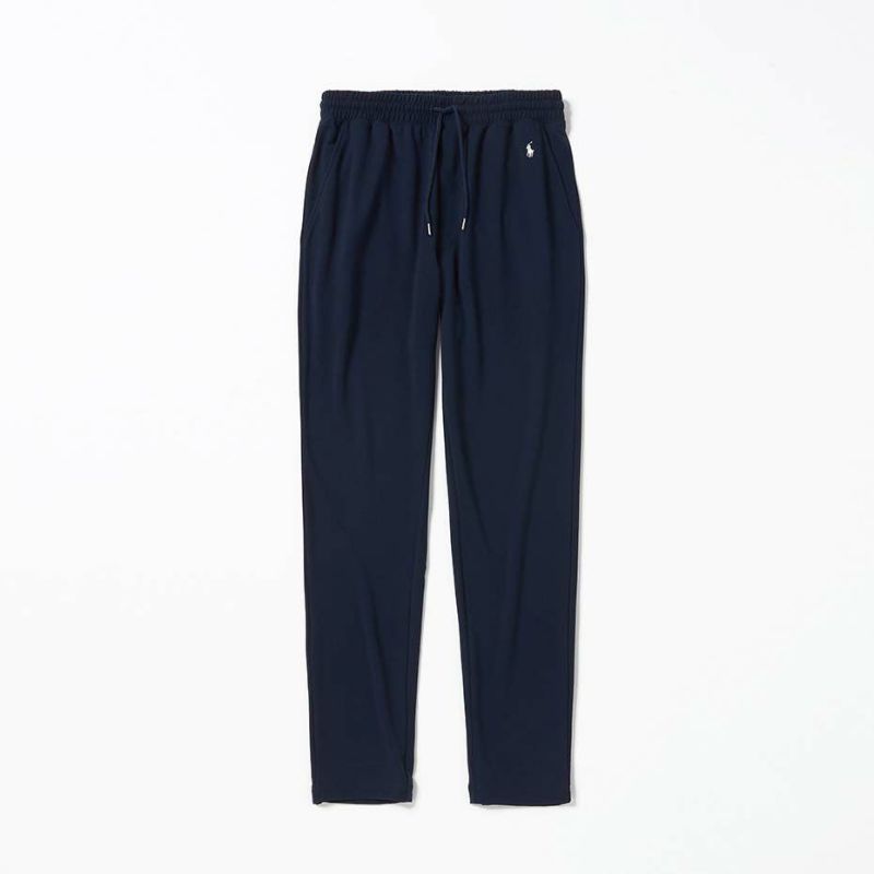 環境に配慮したリサイクルポリエステルとレーヨンの混紡糸にポリウレタンを加えた、ミニテリー素材のリラクシングロングパンツです。 適度な厚みと、柔らかく心地良い肌当たりが特長。 ストレッチ性に優れているので、日常的な動きにもスムーズに対応します。膝から裾にかけてすっきりと見えるシルエットで、裾後ろの当て布もスマートなスタイリングのポイント。 ウエスト左部分にブランドアイコンのポロプレイヤー刺繍入りで、両サイドにポケット付き。 シンプルなデザインなのでお誕生日のお祝いやプレゼント、ワンランク上のギフトとしても最適です。