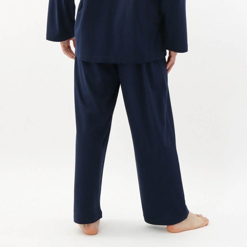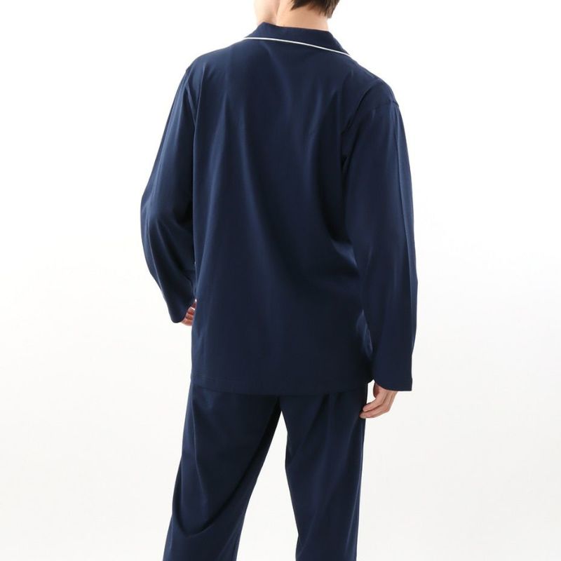 オーガニックコットン100%の長袖パジャマセットです。 表面がなめらかで光沢のある平織生地を採用。 ゆったりとしたサイズ感で、リラックスした着心地が特長。左胸のポケットの上にレッドで入れたブランドアイコンのポロプレイヤー刺繍もポイントです。 ネイビーベースにホワイトのピンドットをオールオーバープリントした、シーズンを選ばず着用できる定番アイテムです。 前開きなのでおしゃれな入院着としてもおすすめです。 お誕生日のお祝いやプレゼント、ワンランク上のギフトとしても最適です。