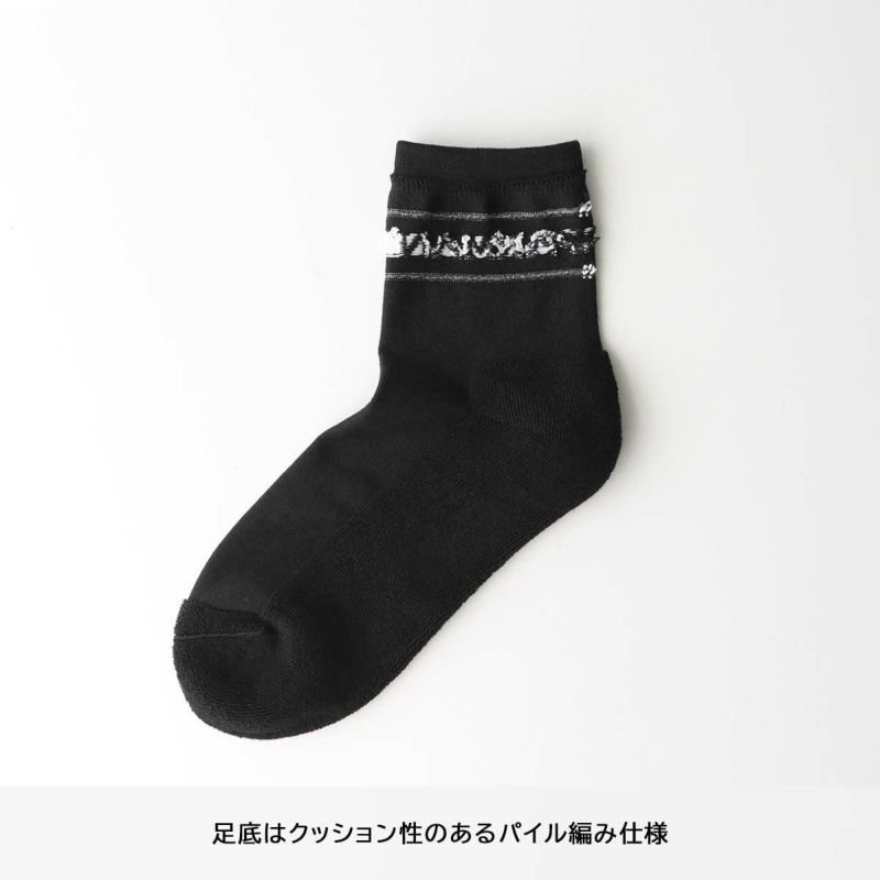 足底部分にはクッション性に優れたパイル編みを採用。快適な履き心地を実現した機能性ソックスです。