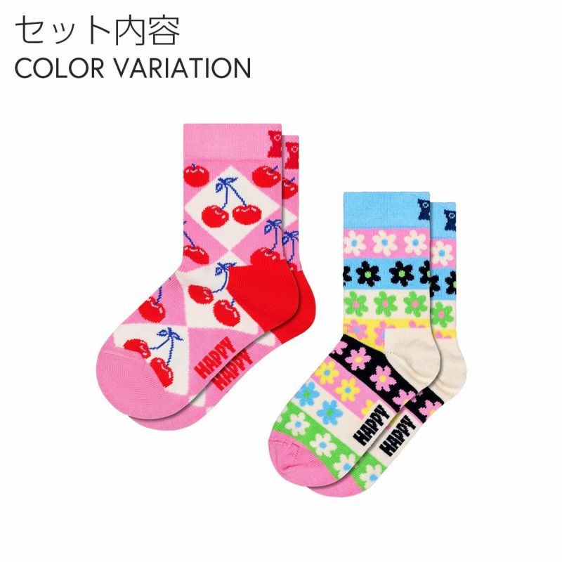 ※メール便配送時には口券を外した状態でお届けいたします。ラッピングご希望の場合は「宅配便」を指定いただきますようお願いいたします。 Kids 2-Pack Cherry Socks