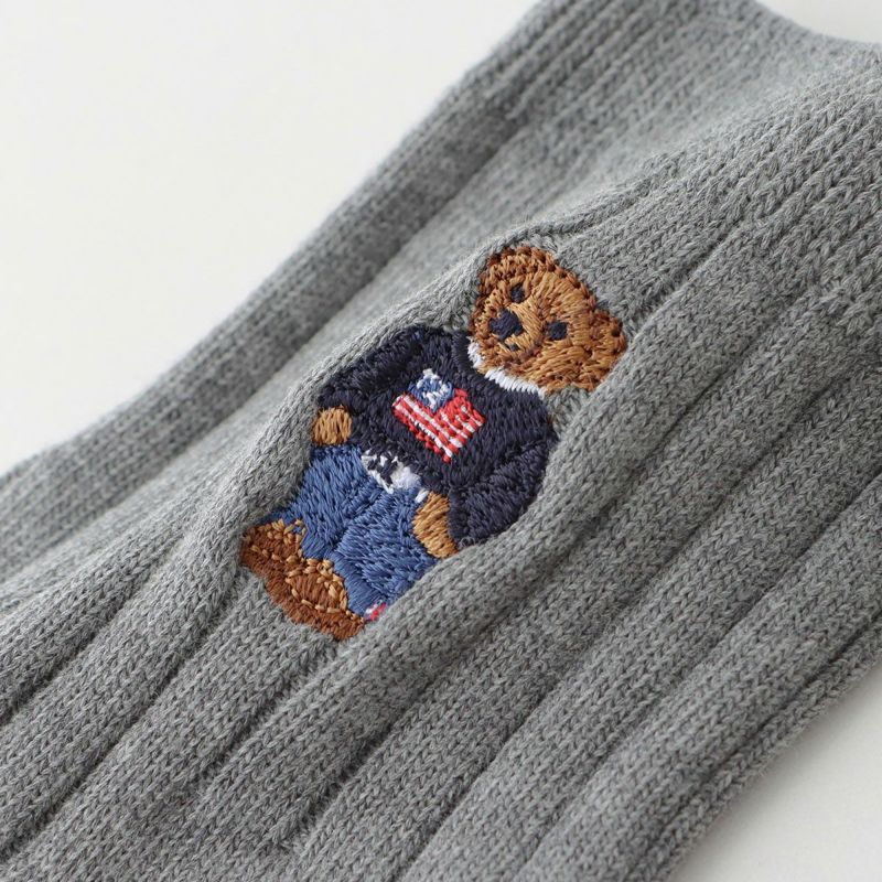 5. POLO RALPH LAUREN ポロベアワンポイント リブソックス ミドルショート丈 消臭加工 刺繍入り メンズ 02022250