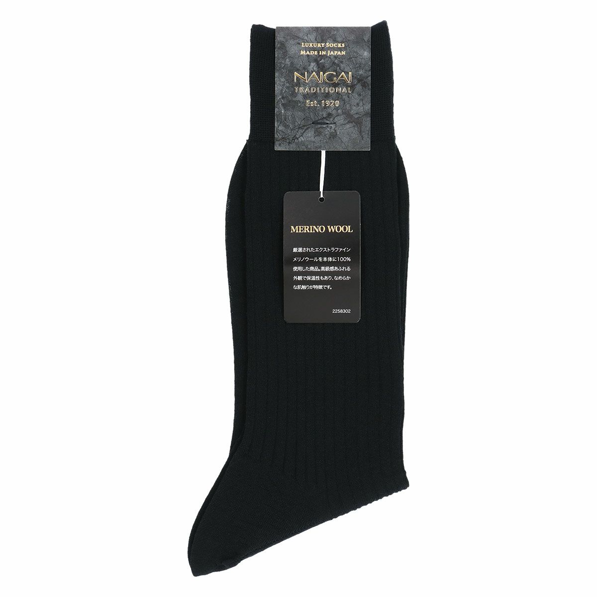 NAIGAI TRADITIONAL ナイガイ最高級の紳士靴下 スーペリオール メリノウール 毛100% 無地リブ クルー丈 メンズ 日本製 02391502