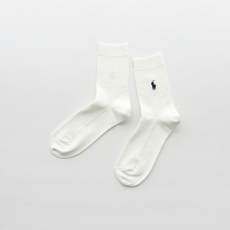 代表的なポニーロゴが刺繍されたカジュアルソックス。どんなコーデにも合わせやすい、シンプルでベーシックなデザインです。