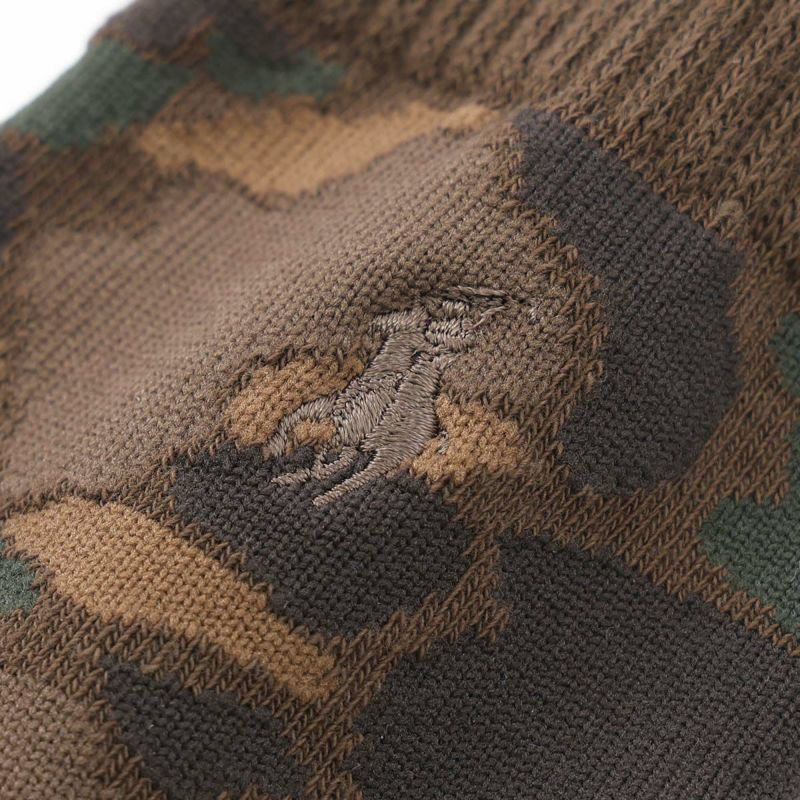 存在感のある迷彩柄が足元のアクセントになるカジュアルソックスです。