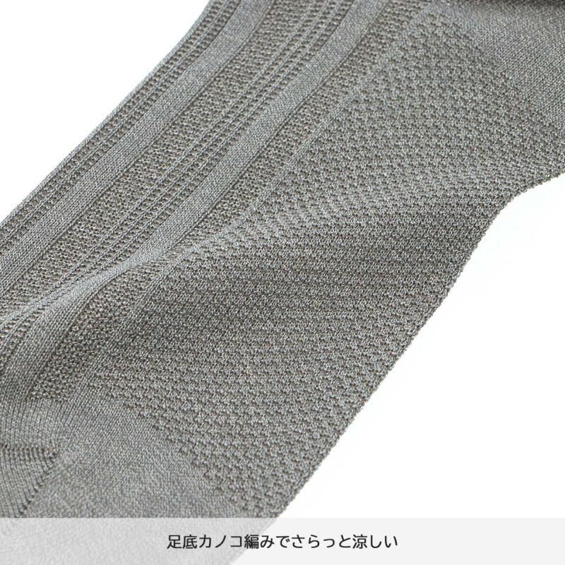 抗菌防臭加工、さわやかな肌ざわりの強撚糸使用、足底カノコ編みでさらっと涼しい