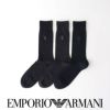 【3足セット】EMPORIO ARMANI ビジネスソックス マンガベア 刺しゅう クルー丈 メンズ 【365日最短翌日発送】92312723