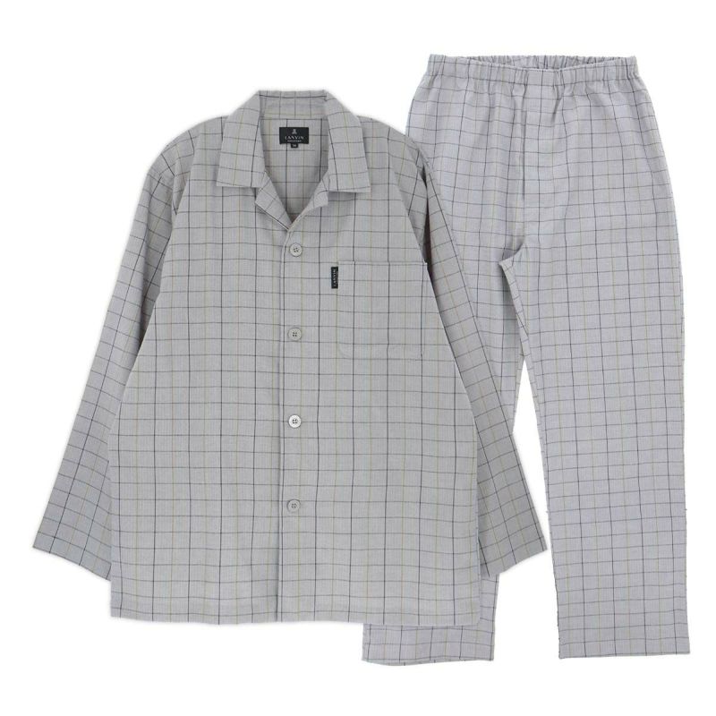 5. LANVIN COLLECTION パジャマ 上下セット【M Lサイズ】 綿100% 先染めツイル 微起毛 ツイルヘリンボン ウィンドウチェック 長袖 長丈パンツ 日本製 メンズ 54450018