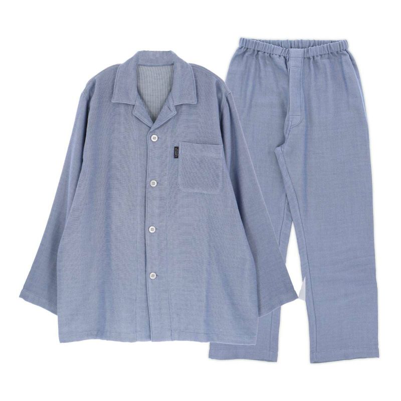 5. LANVIN COLLECTION パジャマ 上下セット 先染め3重ガーゼ シャンブレー【M Lサイズ】 綿100% 長袖 長丈パンツ 前ボタン 前開き メンズ 54450021