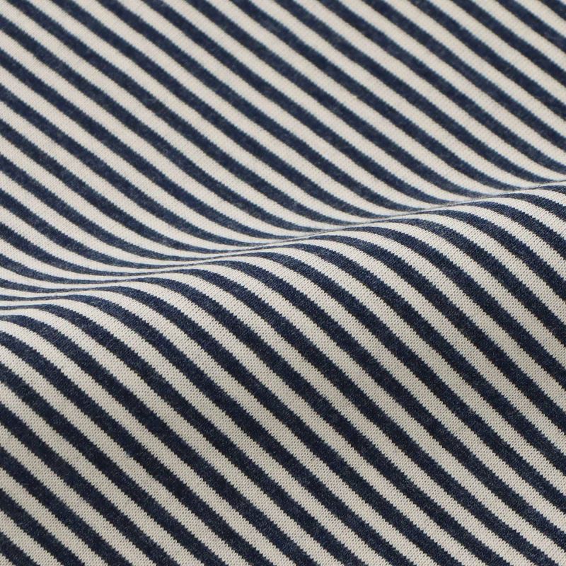 夏素材適度なシルケット加工(毛羽焼き)を施し、やや滑らかな表面感の天竺素材です。